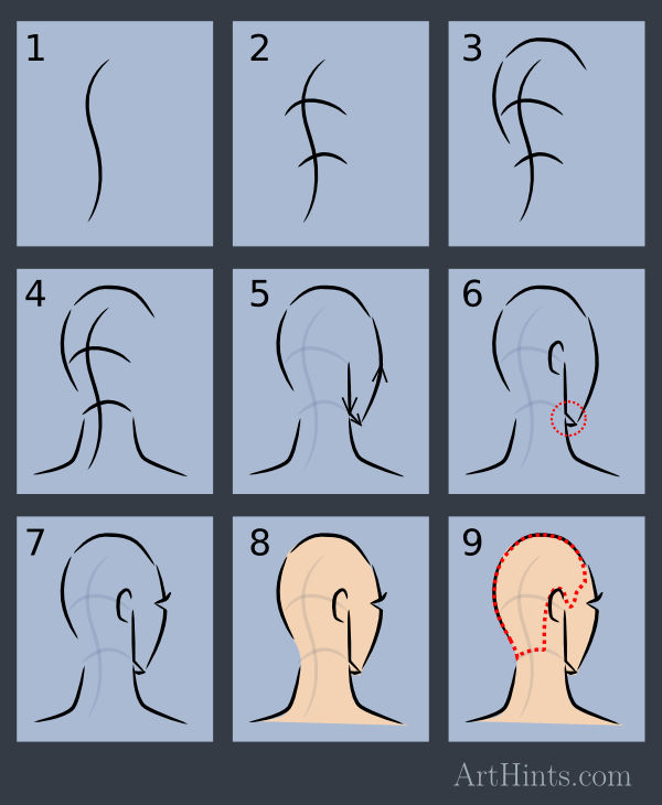 How To Draw The Head From Any Angles - Drawing The Human Head In 3/4 View - Back 3/4 View Head